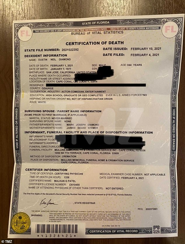 After the actor passed away, Daily Mail revealed the actor was ‘never legally married’ to ex-Jennifer Misner, according to an obtained death certificate. The death certificate obtained by popular celebrity breaking news site TMZ states Diamond ‘never married’ despite the popular belief of many fans that he had exchanged vows with Misner in 2009 before they went their separate ways in 2013.
