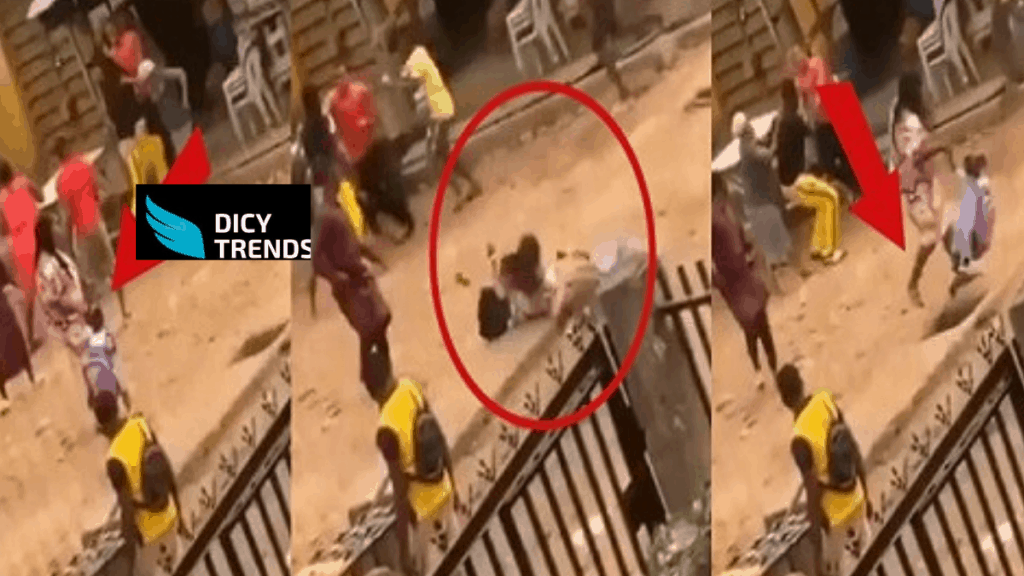 A Lady and her child have been spotted in a video nearly breaking their legs after surviving a fall, focusing their attention on a street fight.