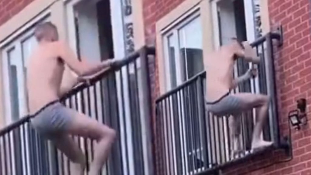 The guilty man decided to run out through the window to avoid being caught by the husband of the woman he was sleeping with.